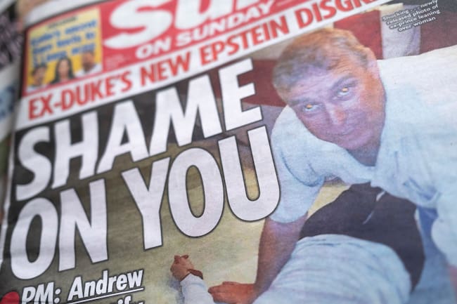 Portadas del Reino Unido muestran nueva imagen de Andrew Mountbatten-Windsor mientras se publican más archivos de Epstein. / Ming Yeung