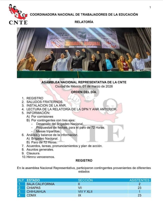 La Coordinadora Nacional de los Trabajadores de la Educación (CNTE) dio a conocer que llevará a cabo un paro nacional de 72 horas y una marcha en la Ciudad de México para exigir al gobierno de la presidenta Claudia Sheinbaum ponga atención en sus demandas laborales.