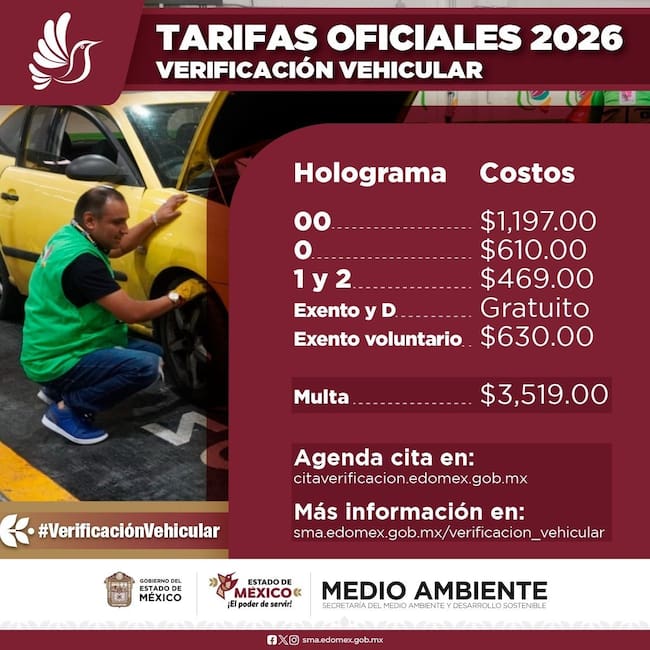 ¿Cuánto cuesta verificar en Edomex 2026?