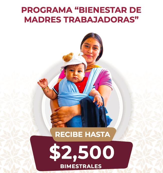 El apoyo para las Madres Trabajadoras en 2026 es de $2,500 pesos bimestrales; el programa cubre un total de 8 meses, lo que suma un apoyo de $10,000 pesos.