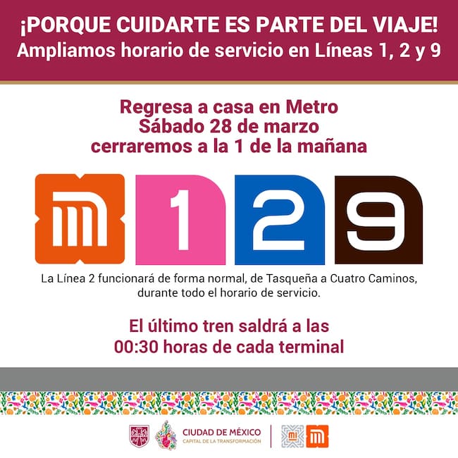 De acuerdo con el anuncio oficial, el Metro CDMX cerrará hasta la 1:00 de la mañana del domingo 29 de marzo.