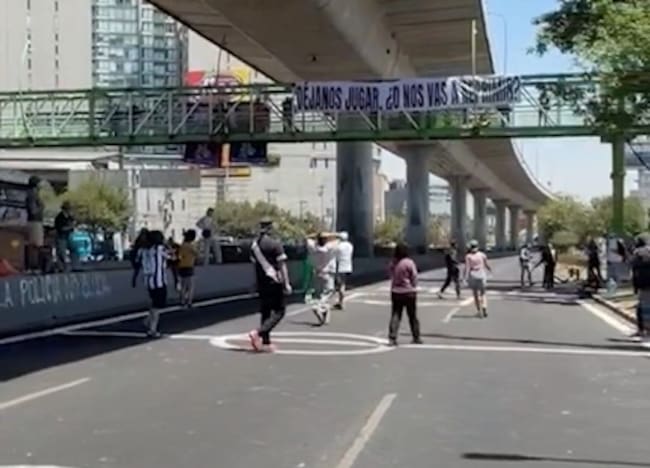 Capitalinos inconformes por obras previas al Mundial aprovecharon su bloqueo para echarse una cascarit,a para no salir de tono rumbo a la Copa FIFA 2026.
