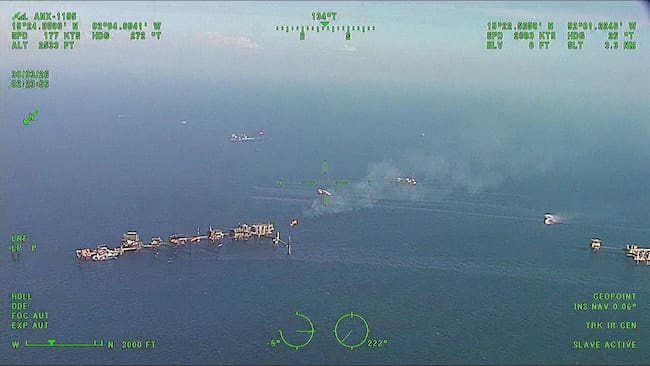 Operativamente, se realizan vuelos de reconocimiento y búsqueda en franja costera y en la Sonda de Campeche; así como recorridos marítimos y terrestres en áreas de impacto y despliegue en el área de origen, incluyendo acciones dentro del Complejo Cantarell.