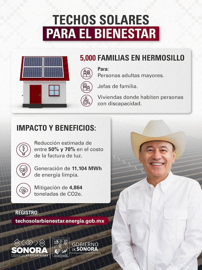 ¿Eres de Hermosillo? Mira cómo puedes ahorrar hasta el 70% en el recibo de luz con el programa de Techos Para el Bienestar 2026