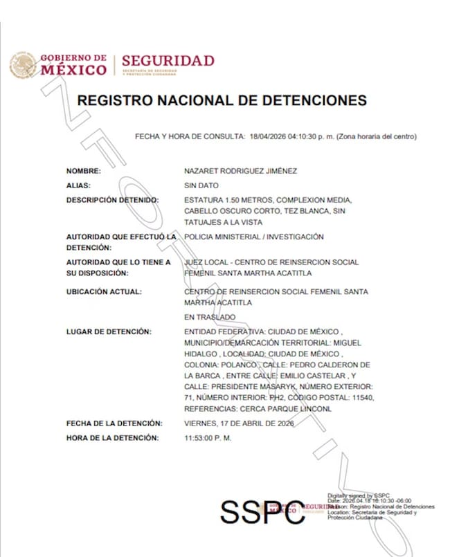 La presión social fue importante, pero una vez que la actriz Sandra Eceverría confesara que ella también había sido timada por la presunta firma de inversión, las autoridades comenzaron voltearon a ver el tipo de delito y luego de investigación, lograron el pasado viernes cerca de las 12 de la noche la detención de Nazaret “N” en un el número 71 de la calle de Pedro Calderón de la Barca en la colonia Polanco en donde elementos de la FGJ CDMX le leyeron sus derechos para luego trasladarla al Centro de Reinserción Social de Santa Martha Acatitla.