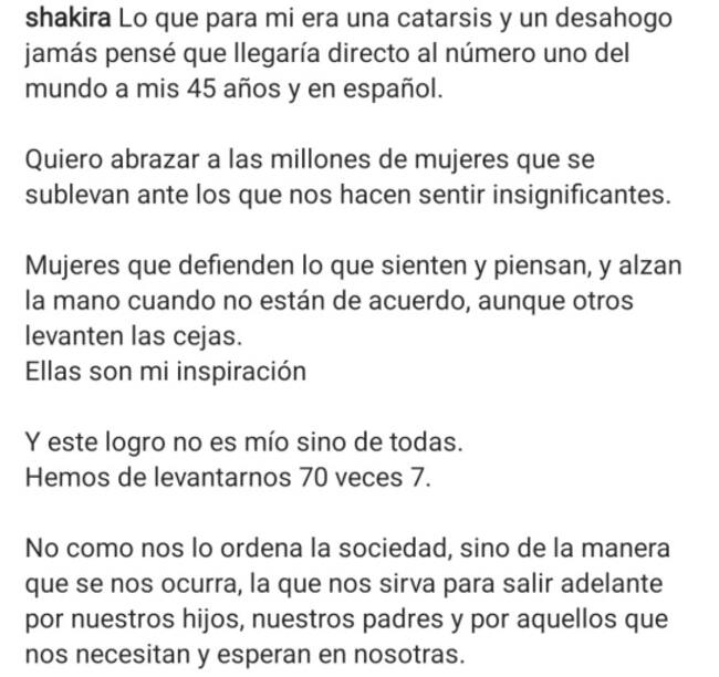 De hecho, a dos días del lanzamiento del tema, Shakira ya se pronunció en redes sociales.