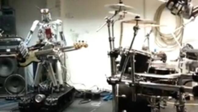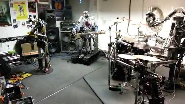 En este video, tres robots tocan instrumentos musicales cual banda de rock, ya que utilizan una guitarra, un bajo y una batería para demostrarnos que la música no es exclusiva para las personas.