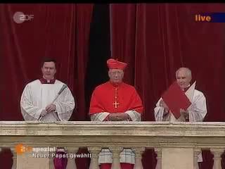 17 días después del deceso del 'Papa Viajero' un alemán de nombre Joseph Ratzinger fue elegido como su sucesor luego de dos días y cuatro reondas de votación en el Cónclave y en este video se muestra el momento en que sale al balcón de la Basílica de San Pedro ya como Benedicto XVI.