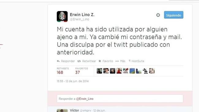 Foto 2 de 2Erwin Lino borró la imagen de su timeline y explicó que alguien ajeno había hecho la publicación.