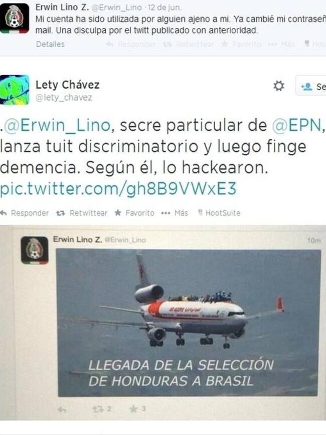 Erwin Lino, Secretario particular del Presidente de México, fue señalado por publicar en su Twitter una imagen discriminatoria contra hondureños; posteriormente explicó que jackearon su perfil.