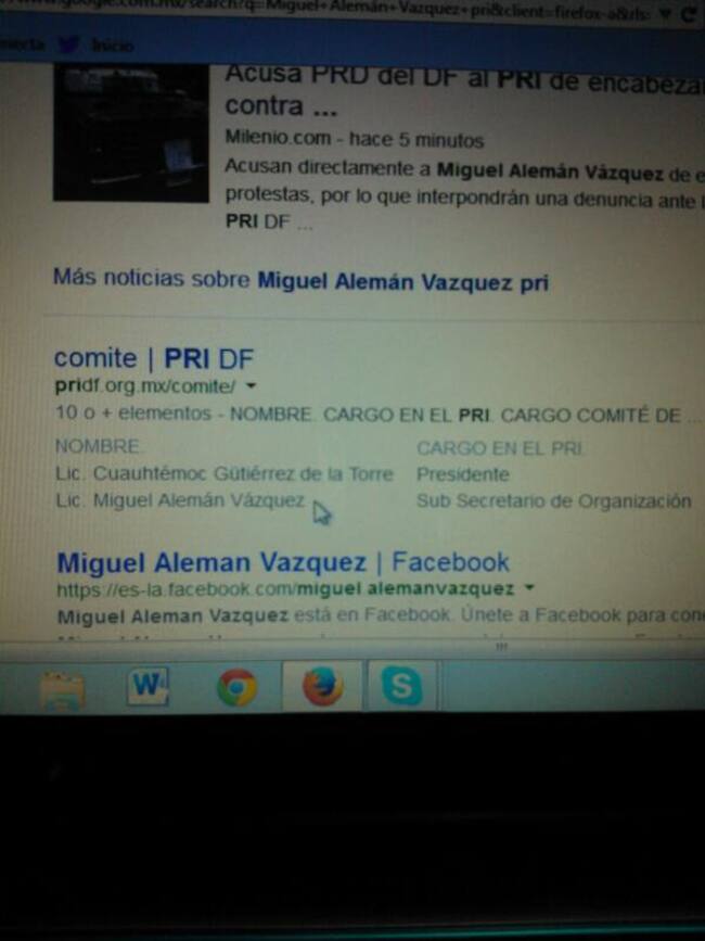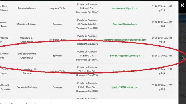 Foto 1 de 4En la página del Comité estatal del PRI en el DF, Miguel Alemán aparece como Subsecretario de Organización del comité tricolor.
