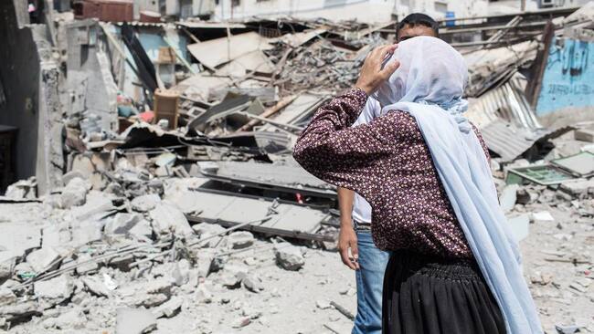 Foto 1 de 5Durante un corto cese al fuego, una mujer mayor palestina arribó al barrio Shujaiyeh para enterarse que su casa había sido derribada por bombas israelíes.