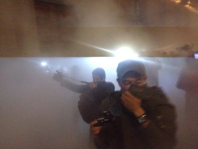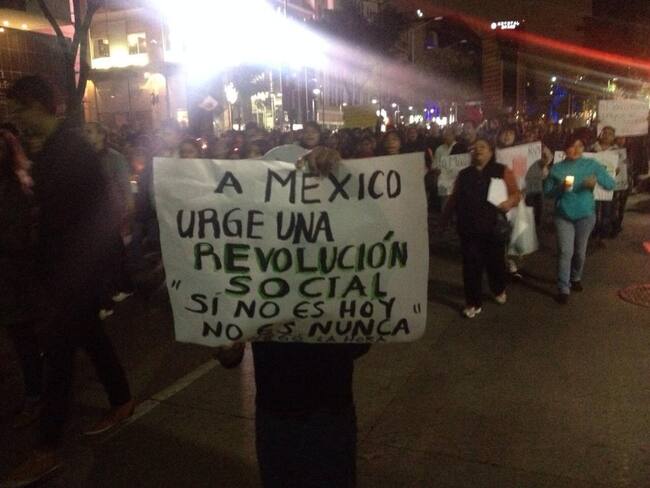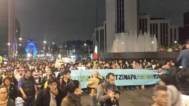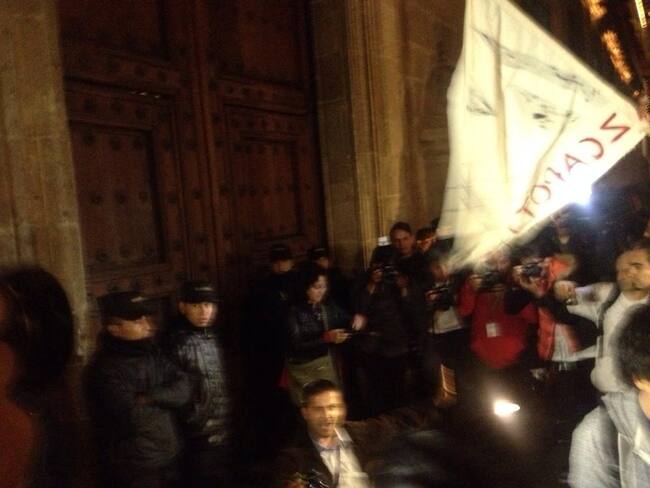 Después de que una marcha pacífica del movimiento por #Ayotzinapa llegara al Zócalo, un grupo de encapuchados incendiaron la puerta de Palacio Nacional y se enfrentaron contra de elementos del Estado Mayor Presidencial
