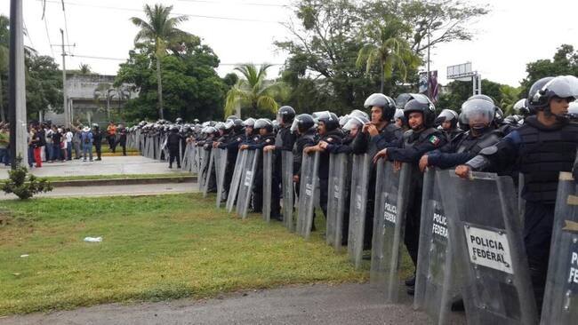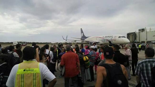 Normalistas, familiares y maestros de la Normal de Ayotzinapa bloquearon temporalmente el Aeropuerto Internacional de Acapulco como parte de las protestas para exigir se presenten los 43 estudiantes víctimas de desaparición forzada