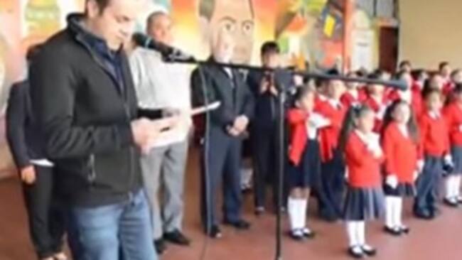 El ex jugador del América se presentó en la escuela pública Benito Juárez para formar parte de los honores a la bandera. Y como estaba muy contento, agradeció la invitación a la directora de la escuela y al "Licenciado Benito Juárez"
