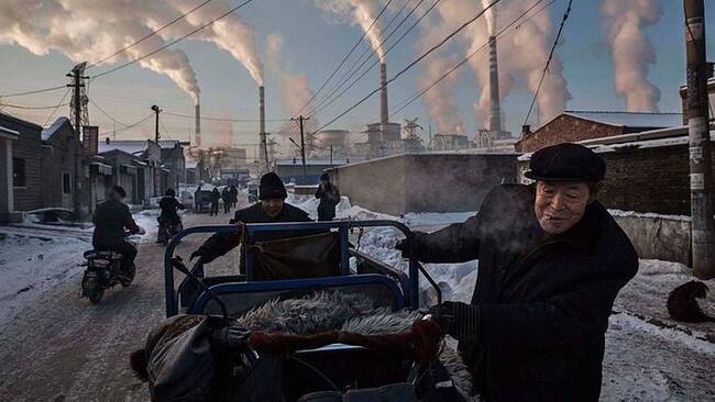 Foto 2 de 22La vida cotidiana: Kevin Frayer, primer premioLos hombres chinos tiran de un triciclo en una zona próxima a una planta térmica de carbón en Shanxi , China.