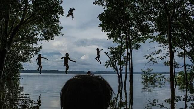 Foto 5 de 22La vida cotidiana: Mauricia Lima, segundo lugarLos niños indígenas que saltan en el agua , ya que jugar alrededor del río Tapajós en Brasil , en la zona tribal munduruku llamada Sawré Muybu.