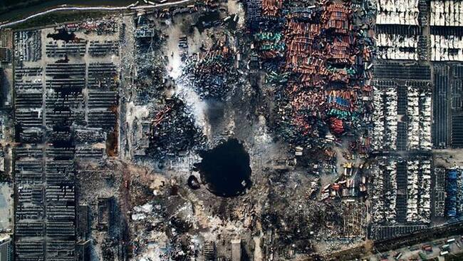 Foto 11 de 22Noticias generales: Chen Jie, tercer lugarVista aérea de la destrucción después de una explosión en Tianjin, China.