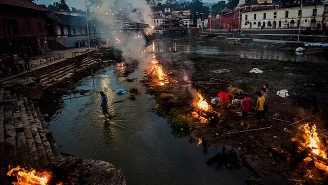 Foto 6 de 22Noticias generales: Daniel Berehulak, tercer premio Las secuelas de los 25 de abril de terremoto de magnitud 7,8 en Nepal: las llamas se elevan por la quema de piras funerarias durante la cremación de las víctimas del terremoto en el templo de Pashupatinath en las orillas del río Bagmati.