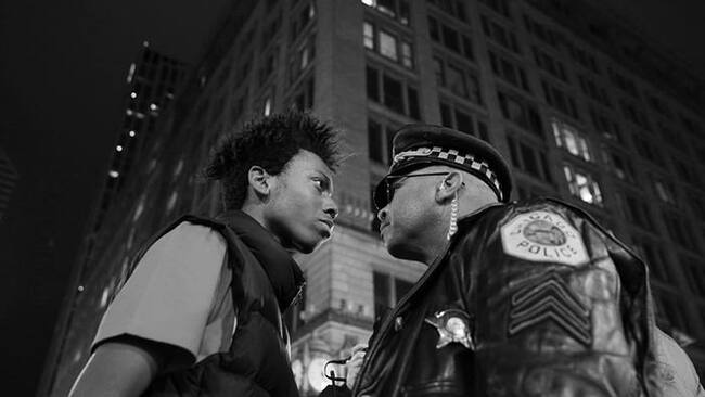 Foto 21 de 22Temas contemporáneos: John J Kim, tercer lugarMarcha contra la violencia policial: Lamon Reccord mira abajo de un sargento de la policía durante una protesta después de la muerte a tiros de Laquan McDonald por la policía de Chicago , Illinois, EE.UU.