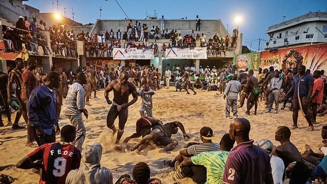 Foto 15 de 22Deportes: Cristiano Bobst , segundo premioLos luchadores gris-gris de Senega : un torneo en la arena Adrien Senghor . La lucha libre se lleva a cabo en la noche tarde cuando las temperaturas caen.