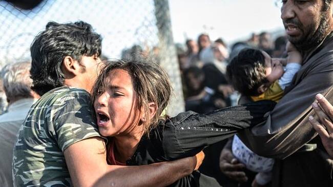 Foto 20 de 22Noticias: Bulet Kilic, tercer premioFrontera rota: un hombre tiene una niña llorando mientras que otros se precipitan a través de vallas fronterizas desglosadas para entrar en Turquía.