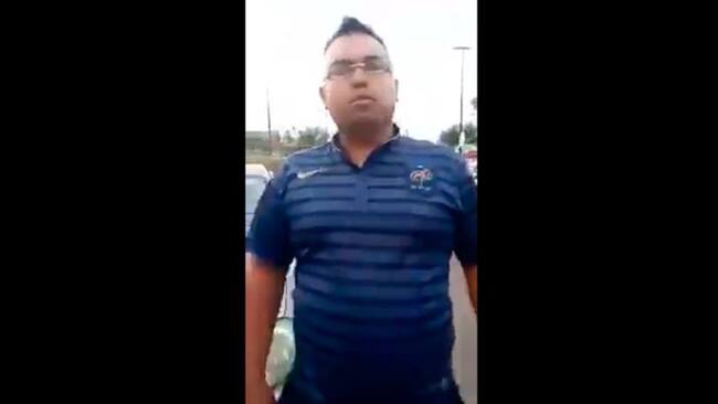 La grabación inicia con la imagen de un hombre que se baja de un automóvil Chevy Monza color rojo, mientras el denunciante dice: “éste es el vehículo que se metió donde me iba a estacionar de reversa y ahí viene, me va a agredir, pero no me importa”. Tras lo cual se observa cómo el agresor, que porta una playera de la Federación Francesa de Futbol, se acerca al joven detrás de cámara y lo avienta.