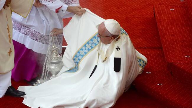 El pontífice no vio un escalón que tenía enfrente y cayó al suelo, tirando algunos inciensos que tuvieron que ser apagados por bomberos.