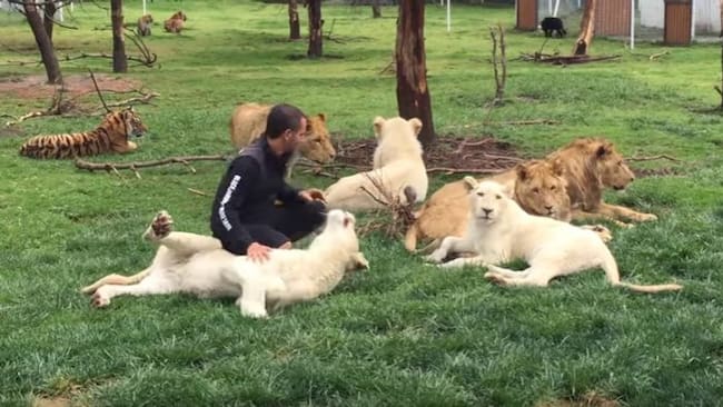 Un video insólito muestra el momento en que un tigre salvó a su cuidador del ataque de un jaguar; aunque para el hombre en cuestión "simplemente se trató de un juego".