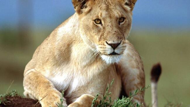 El video muestra a “Elsa” recostada mientras mira fijamente a los paseantes, que van montados en uno de los coches del safari.