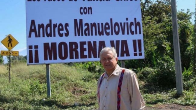 “Los rusos de Tuxtla Chico con Andrés Manuelovich. ¡Morena va!”, dice el espectacular colocado a la entrada de la población.