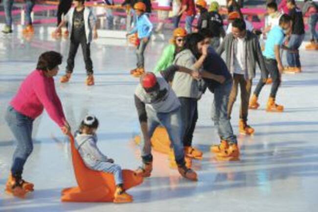 Lánzate a la pista de hielo en el Monumento a la Revolución