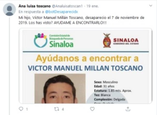 Estudiante mexicano crea bot para ayudar en la búsqueda de desaparecidos / Captura de Redes Sociales
