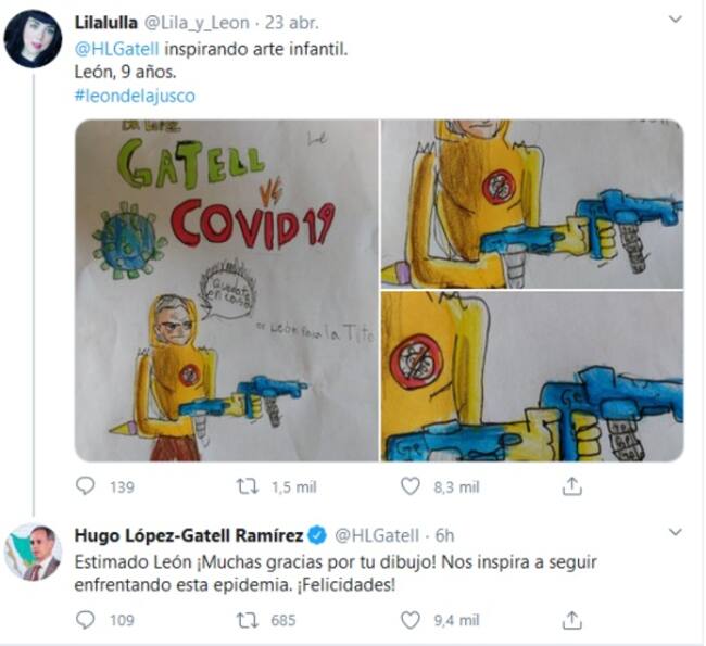 López-Gatell se dio cuenta de los dibujos que fueron difundidos en la cuenta de la mamá del niño y no dudo en responder y agradecer el ingenio de León.