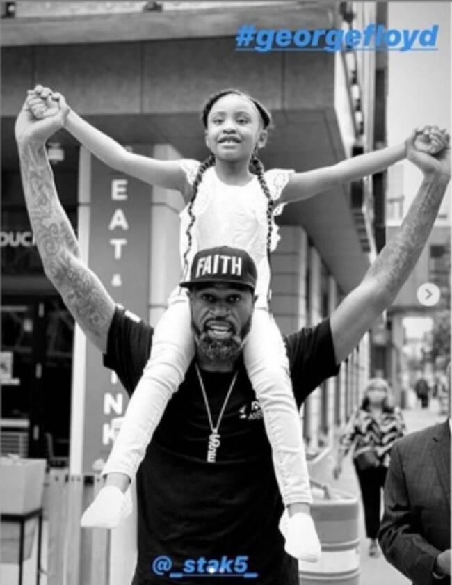 Un video publicado en el Instagram del exjugador de la NBA, Stephen Jackson, se ha hecho viral, pues en sus hombros lleva cargado a la pequeña Gianna, la hija de seis años de George Floyd, hombre que la semana pasada perdió la vida a manos de la policía en Minnesota.