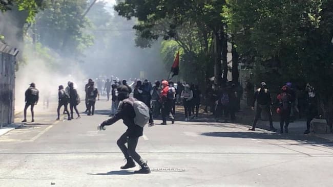 En su retirada, los sujetos prendieron fuego a algunas palmeras sobre Paseo de la Reforma y también arrojaron piedras hacia los policías.