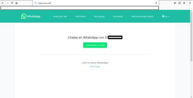 3. Ingresa el link en el navegador https://wa.me/ seguido del número por ejemplo https://wa.me/ más los 10 dígitos del número telefónico y con eso te manda a una página de conversación.