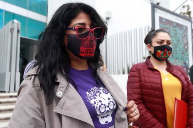 La activista Frida Guerrera a las afueras de la Fiscalía del Estado de Piebla