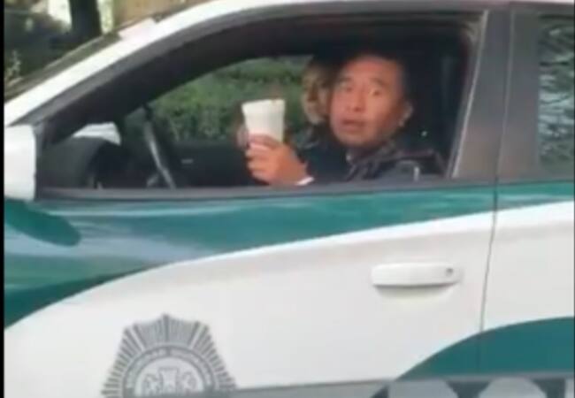 En redes sociales un vídeo se ha hecho viral donde exhiben a dos policías que se encuentran estacionados en una ciclovía mientras desayunaban.