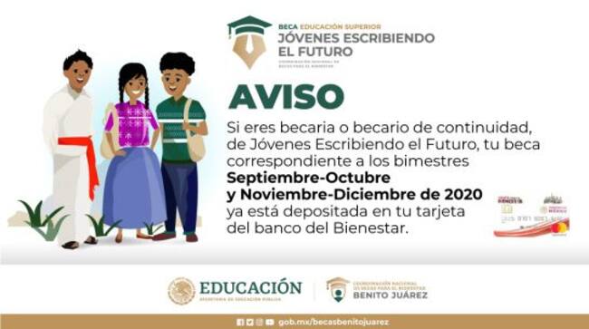 A través de las redes sociales de la Coordinación Nacional de Becas para el Bienestar Benito Juárez publicó que el pago correspondiente a los últimos periodos del año ya estaba depositado en las tarjeta del Banco del Bienestar.