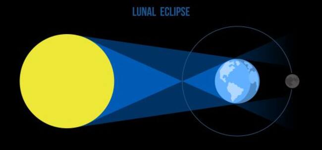 Un eclipse lunar, por el contrario, ocurre cuando el Sol, la Tierra y la Luna están alineados y la Tierra proyecta su sombra sobre la Luna que puede ser vista desde nuestro planeta. Existen tres tipos: eclipse total, eclipse parcial y eclipse penumbral.
