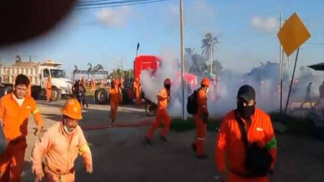 En redes sociales se observa a los policías arremetiendo con gas lacrimógeno y armas de fuego contra los empleados.