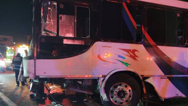 En el percance registrado a la altura de la parada conocida como "El Gallito", se vieron involucrados un autobús de pasajeros y un automóvil particular, afectando la circulación en ambos sentidos.