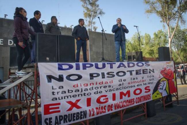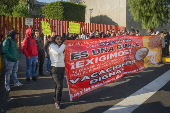 Protestan por los cambios que realizaron los legisladores a la minuta sobre "vacaciones dignas", y que aprobó la Comisión del Trabajo en San Lázaro