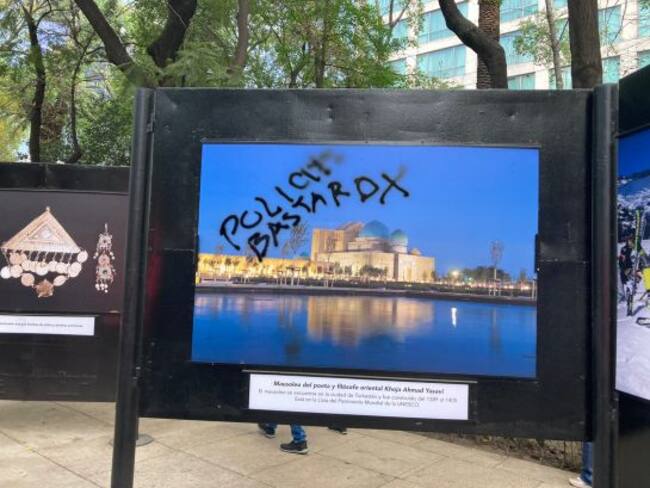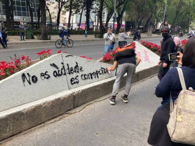 En varios puntos de la protesta se registraron pintas en el mobiliario urbano de parte de los manifestantes en contra del Gobierno federal, quien también rompieron vidrios de una aseguradora y un banco.