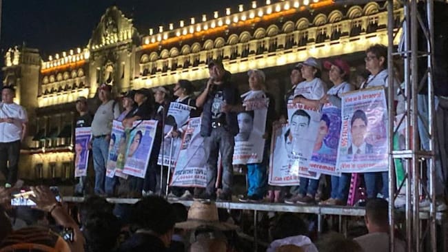 Esta noche, padres de los 43 normalistas de Ayotzinapa realizaron un mitín para exigir justicia en la Plancha del Zócalo capitalino, a nueve años de la desaparición de los jóvenes en Iguala, Guerrero.