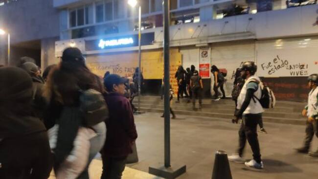 18:50 horas Un grupo de encapuchados avanzan generando destrozos a su paso.