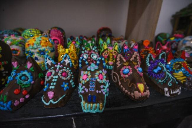 También incluyen los elementos de una ofrenda tradicional como el papel picado, las flores de cempasúchil y velas.